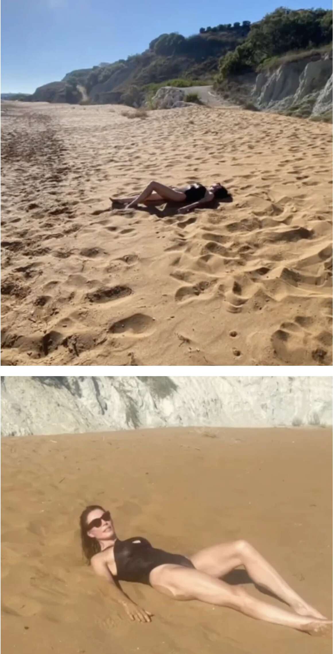 «Στην Κεφαλονιά, στην πατρίδα του άνδρα μου, με τις απίστευτου κάλλους παραλίες, όπου το αγόρι μας, Λάμπης Ευαγγελάτος, έκλεισε τα 27», έγραψε στην λεζάντα.