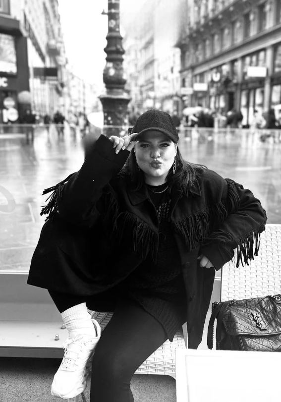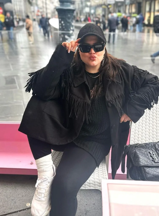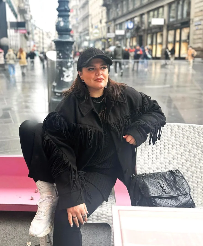 Σε ένα από αυτά τα στιγμιότυπα τη βλλέπουμε να φορά ένα cozy και άνετο travel σύνολο, στο οποίο έχει συνδυάσει ένα μαύρο oversized πλεκτό πουλόβερ με μαύρο κολάν και λευκά sneakers. Ολοκλήρωσε το ταξιδιωτικό σύνολό της με ένα μαύρο τζάκετ με κρόσσια, ένα καπέλο και μία δερμάτινη ΥSL τσάντα ώμου.