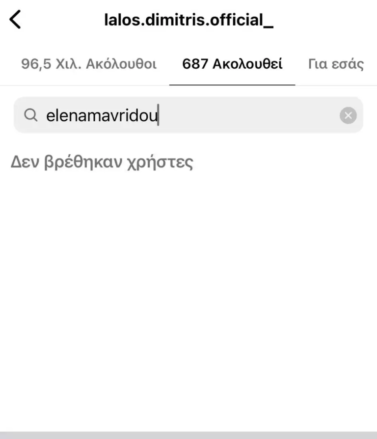 Πιο συγκεκριμένα, εδώ και μερικές ημέρες, ο Δημήτρης Λάλος και η Έλενα Μαυρίδου έχουν σταματήσει να ακολουθούν ο ένας τον άλλον στο instagram, διατηρώντας ωστόσο τις κοινές τους φωτογραφίες.