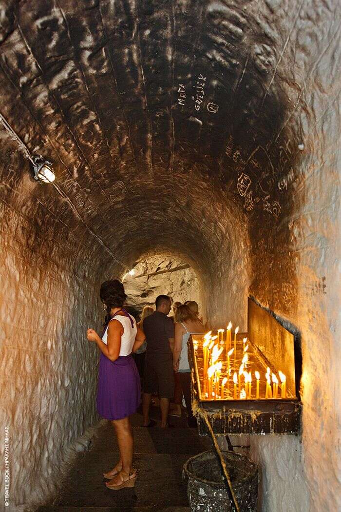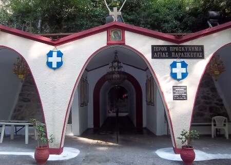 Ακριβώς δίπλα από το ναό της Αγίας Παρασκευής βρίσκεται μία μικρή σπηλιά. Εκεί είναι και το αρχικό προσκύνημα, όπου στο τέλος της σπηλιάς από μία οπή στο βράχο αναβλύζει το θαυματουργό αγίασμα της Αγίας Παρασκευής. Η σπηλιά είναι τόσο μικρή που κάθε φορά χωράει μετά βίας μόνο ένας άνθρωπος και αν είναι αρκετά ψηλός πρέπει να μπει σκυμμένος.
