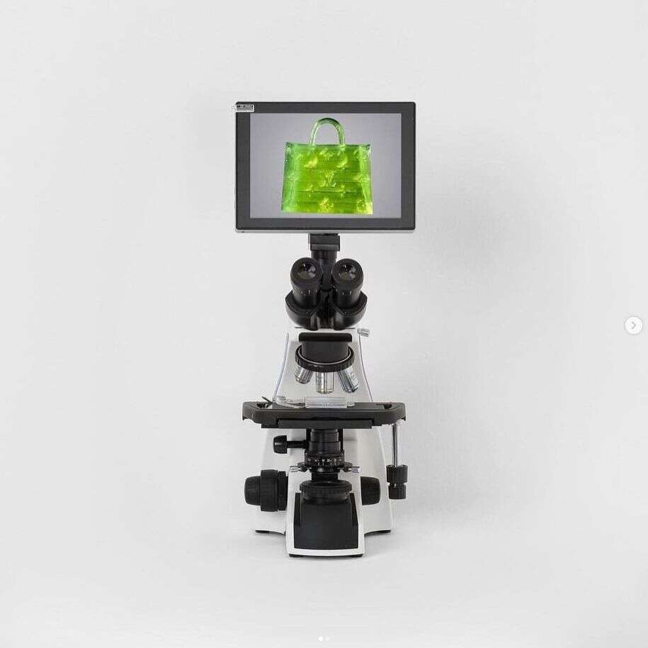 Η τσάντα πωλήθηκε μαζί με ένα μικροσκόπιο, εξοπλισμένο με μια ψηφιακή οθόνη μέσω της οποίας μπορεί να προβληθεί λεπτομερώς το σχέδιο. Μια διαφημιστική φωτογραφία δείχνει το σχέδιο με μεγαλύτερη λεπτομέρεια, αποκαλύπτοντας το χαρακτηριστικό μονόγραμμα «LV» της Louis Vuitton.