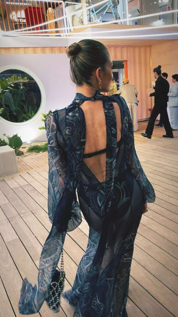 Για την εμφάνισή της στο κόκκινο χαλί του Φεστιβάλ όπου παρακολούθησε την ταινία “Indiana Jones and the dial of destiny” επέλεξε μια διάφανη ολόσωμη φόρμα με μεταλλικές λεπτομέρειες και λάμψεις από τη σχεδιάστρια Stella McCartney.