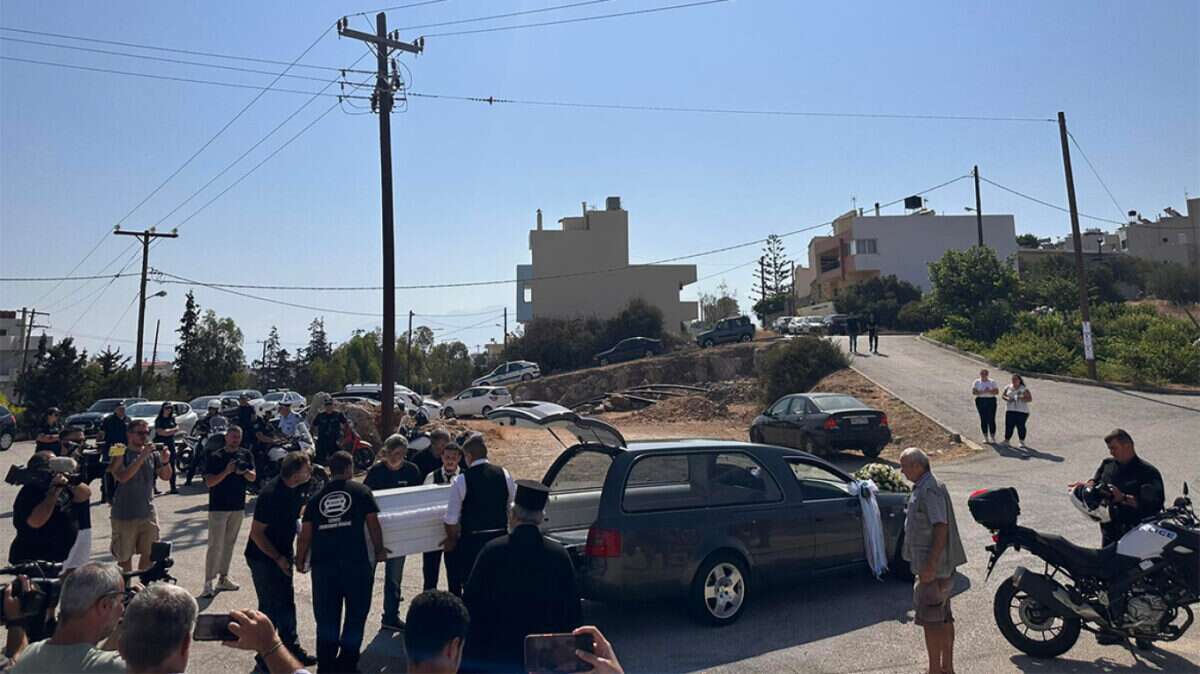 Το λευκό φέρετρο με τη σορό του άτυχου άνδρα ήταν στον Ιερό Ναό Ευαγγελιστρίας, στον Άγιο Νικόλαο, από τις 11:00 και στις 12:00 ξεκίνησε η εξόδιος ακολουθία.