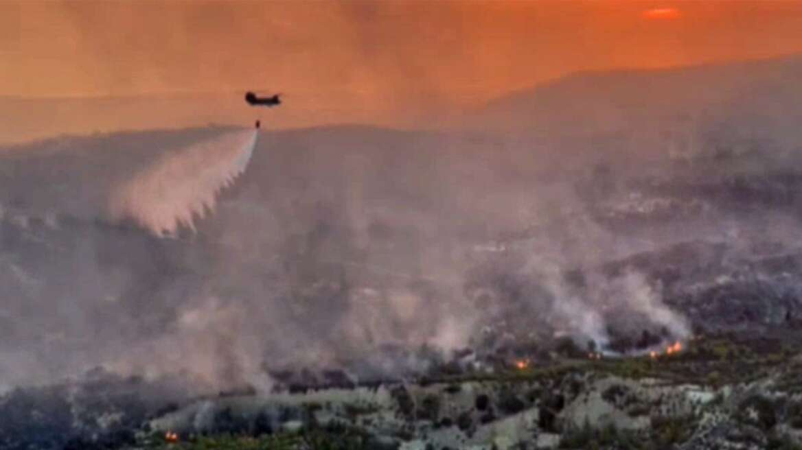 Σε βίντεο φαίνεται η προσπάθεια Σινούκ να βοηθήσει στη φωτιά στο Λουτράκι αλλά και πλάνα από τις αντιπυρικές ζώνες που άνοιξαν μηχανήματα των ΕΔ στην ίδια περιοχη.