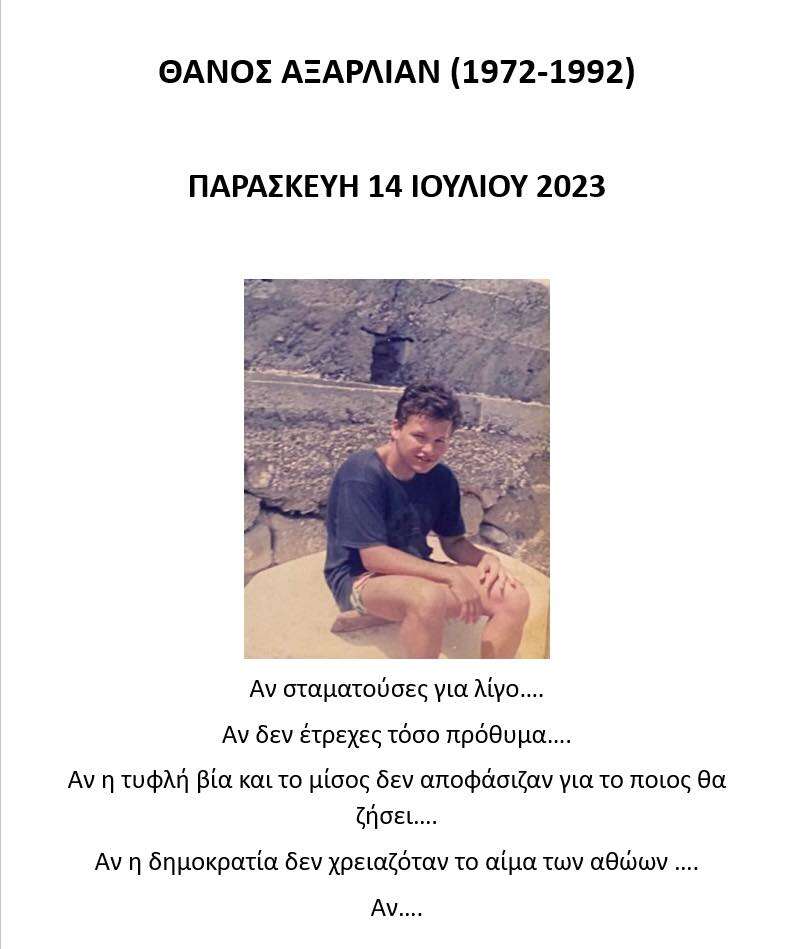 Θάνος Αξαρλιάν: Σαν σήμερα δολοφονήθηκε ο 20χρονος φοιτητής