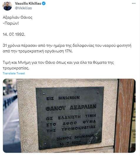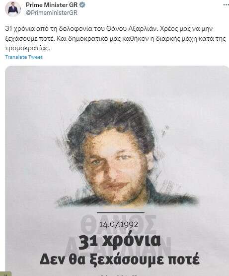 Οι αναρτήσεις των πολιτικών προσώπων για την επέτειο θανάτου του Θάνου Αξαρλιάν
