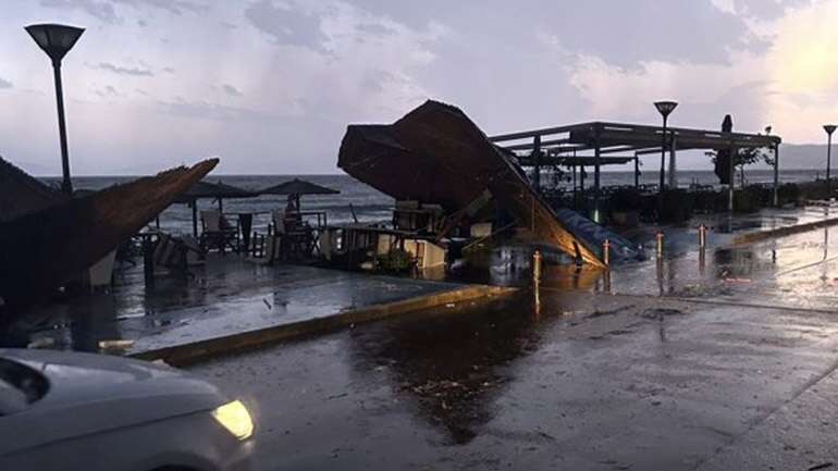 Στην παραλία Οφρυνίου χώροι εστίασης και παραλιακά μπαρ υπέστησαν σημαντικές ζημιές ενώ πλημμύρισαν αυτοκίνητα, υπόγεια κατοικιών και καταστημάτων. Επαγγελματίες και κάτοικοι αιφνιδιάστηκαν ενώ αυτόπτες μάρτυρες έκαναν λόγο για ανεμοστρόβιλο που στο πέρασμα του ξερίζωσε πολλές κατασκευές από υπαίθριους χώρους.