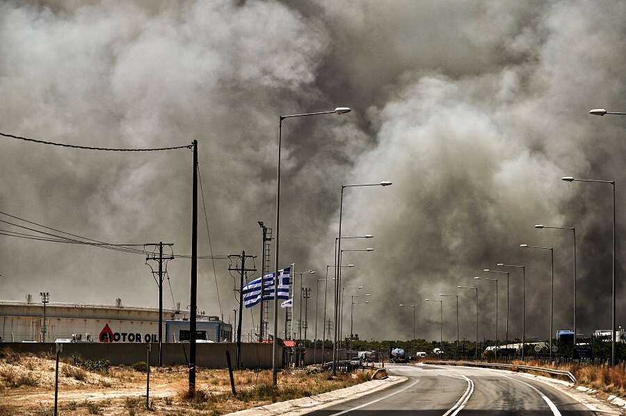 Το πύρινο μέτωπο από τα Δερβενοχώρια κατέληξε μέχρι την Μάνδρα και πλησιάζει την Εθνική Οδό.
