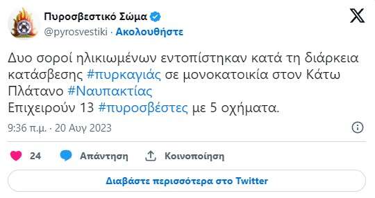Ο πρόεδρος μίλησε στο Nafpaktianews.gr αναφέροντας ότι αδελφός των δύο ηλικιωμένων επιβεβαίωσε ότι τα δύο άτομα ήταν μέσα στο σπίτι.