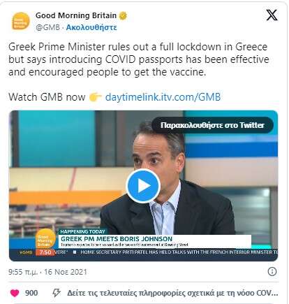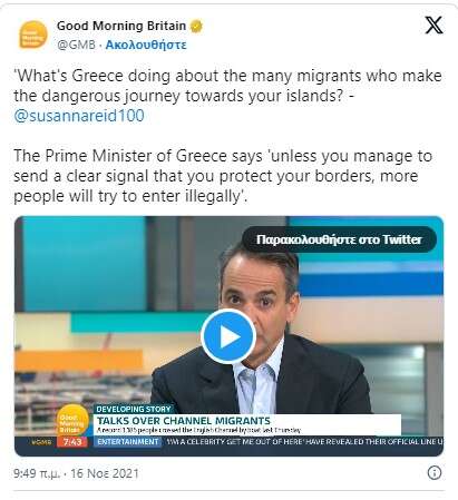 Ο Κυριάκος Μητσοτάκης αναμένεται να δώσει συνέντευξη στην εκπομπή «Good Morning Britain» του βρετανικού τηλεοπτικού δικτύου ITV στις 09:25 το πρωί της Τετάρτης 2 Αυγούστου.