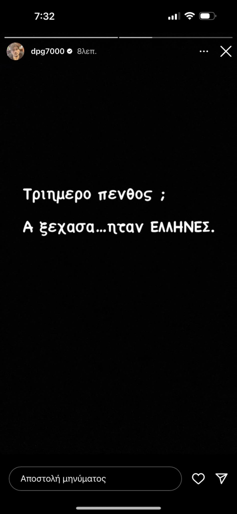 «Τριήμερο πένθος; Α ξέχασα… Ήταν Έλληνες» ήταν χαρακτηριστικά το καυστικό σχόλιο που έκανε στο Instagram, αφήνοντας έτσι το στίγμα του.
