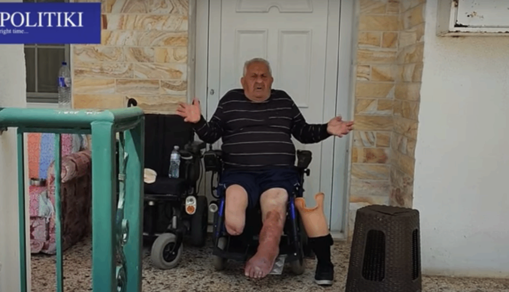 Ο ηλικιωμένος άνδρας έχει χάσει το ένα του πόδι και κινείται πλέον με αναπηρικό αμαξίδιο. Το σπίτι του βγήκε σε πλειστηριασμό, καθώς ο ίδιος ήταν εγγυητής σε δάνειο του γιου του, που δεν αποπληρώθηκε εξ’ ολοκλήρου.