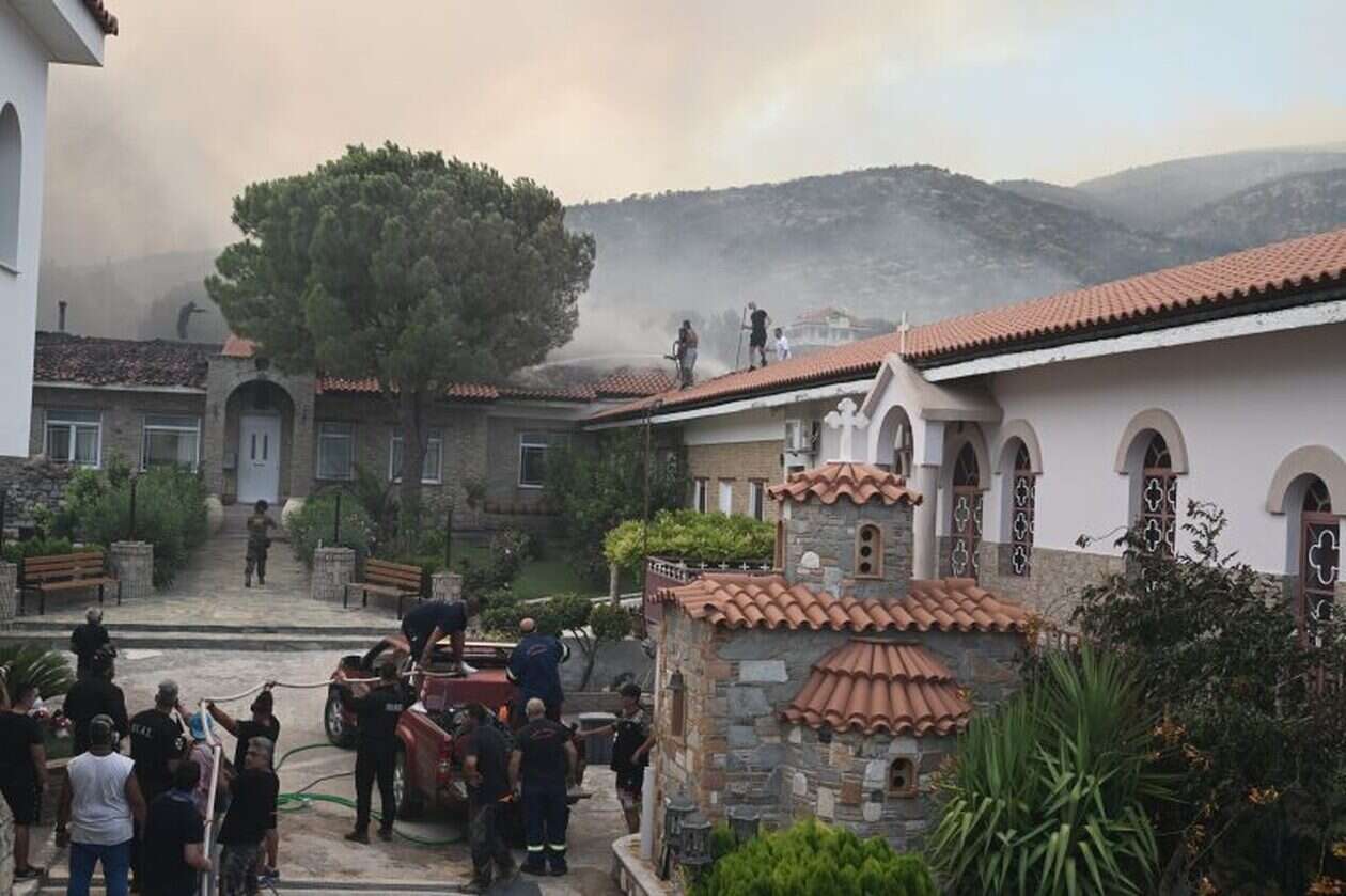 Το μεσημέρι της Τετάρτης (23/8) στο μοναστήρι της Αγίας Παρασκευής εκτυλίχθηκαν ανατριχιαστικές στιγμές, καθώς οι φλόγες έφτασαν μια ανάσα από τη μονή και έγινε τιτάνια προσπάθεια για τη σωτηρία της.