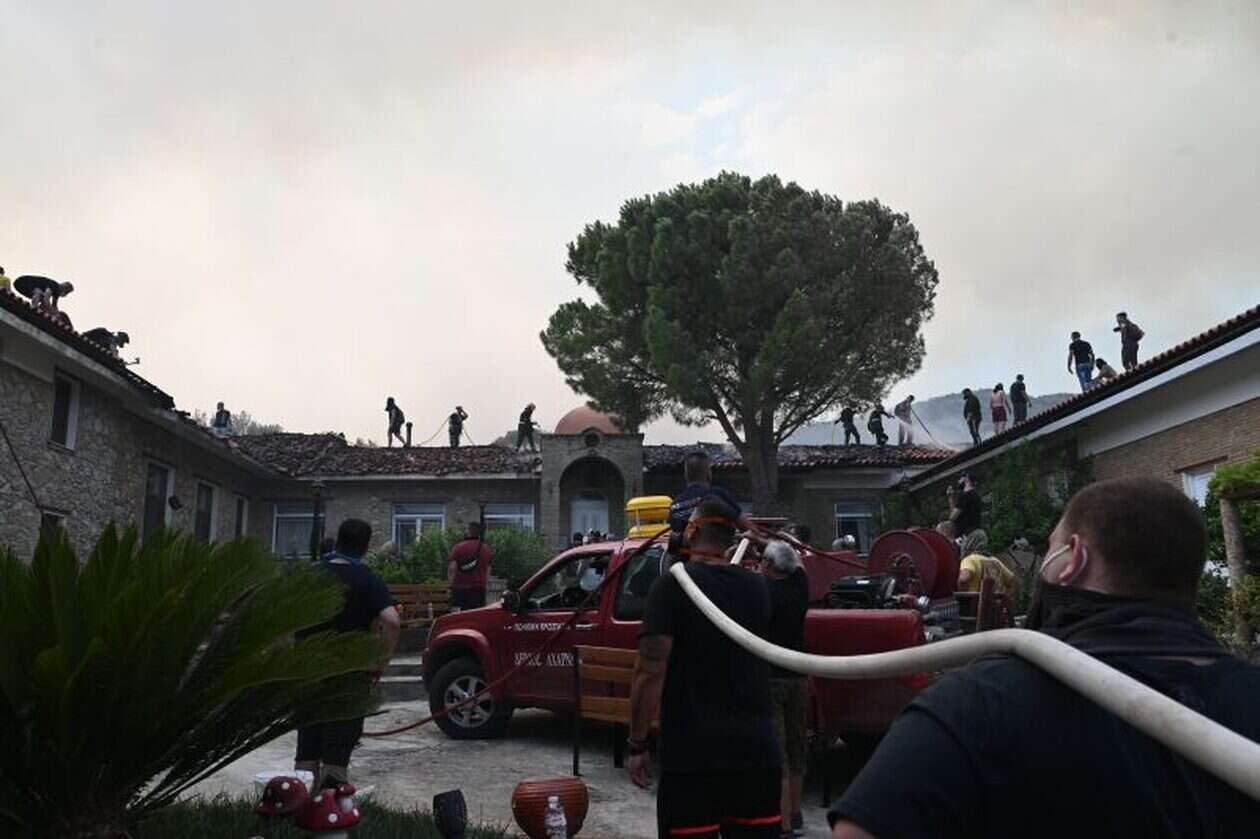 Πάρνηθα: Συγκίνηση με τον αγώνα για την κατάσβεση της φωτιάς του μοναστηρίου της Αγίας Παρασκευής