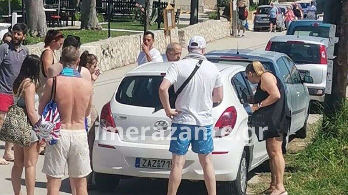 «Το πρωί ήρθε ένας Άγγλος και μας ειδοποίησε ότι μέσα σε ένα αυτοκίνητο είναι κλειδωμένο ένα μωρό. Βγήκαμε έξω το είδαμε και ήταν μέσα στο κλειδωμένο αυτοκίνητο. Καθόταν στο καθισματάκι του και ήταν ιδρωμένο. Αμέσως πήρα τηλέφωνο στην αστυνομία, με ρώτησαν σε ποιον ανήκει το ενοικιαζόμενο αυτοκίνητο και με κατεύθυναν τι να κάνω. Ειδοποιήσαμε τον ιδιοκτήτη και ήρθε ο άνθρωπος αμέσως, μέσα σε 5-6 λεπτά. Έφερε κλειδιά, το ανοίξαμε, δώσαμε νερό στο παιδάκι, του βρέξαμε το πρόσωπο. Ήταν ιδρωμένο και λίγο ταλαιπωρημένο και μετά ήρθε η αστυνομία και το ασθενοφόρο. Είχε τις αισθήσεις του δεν πρόλαβε να λιποθυμήσει. Ένας τουρίστας μας ενημέρωσε αρχικά και μετά μαζεύτηκε πολύς κόσμος. Όποιος περνούσε, καθόταν και προσπαθούσε να βοηθήσει με τον τρόπο του» είπε στο imerazante.gr ο Γεράσιμος Γιατράς.