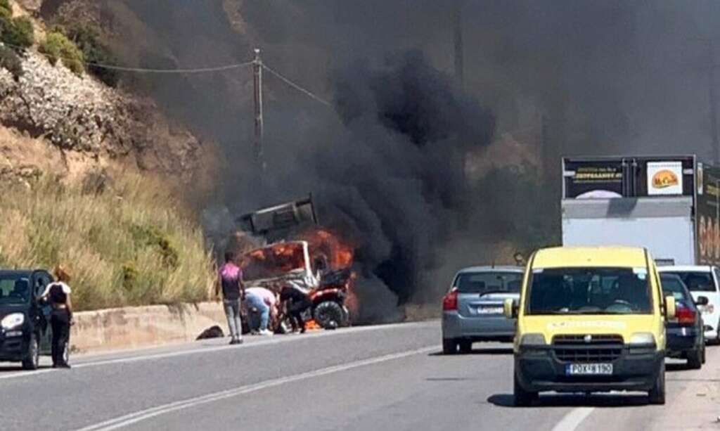 Τα δύο οχήματα από την σύγκρουση πήραν φωτιά και κάηκαν ολοσχερώς, ενώ και οι πέντε επιβάτες διακομίστηκαν στο Νοσοκομείο Ρόδου τραυματίες.