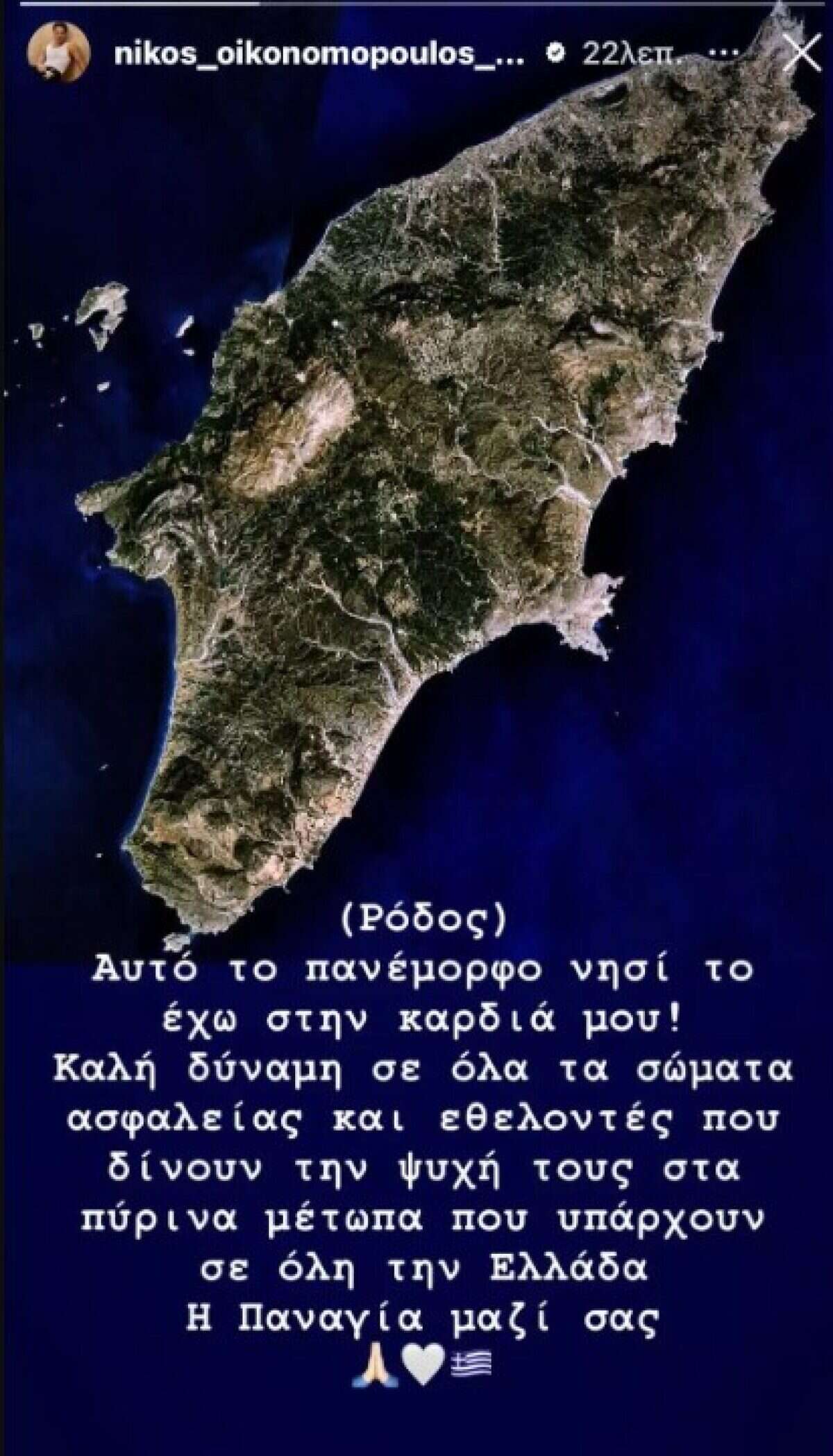 Νίκος Οικονομόπουλος: Η δημοσίευση στο Instagram για τις φωτιές στη Ρόδο