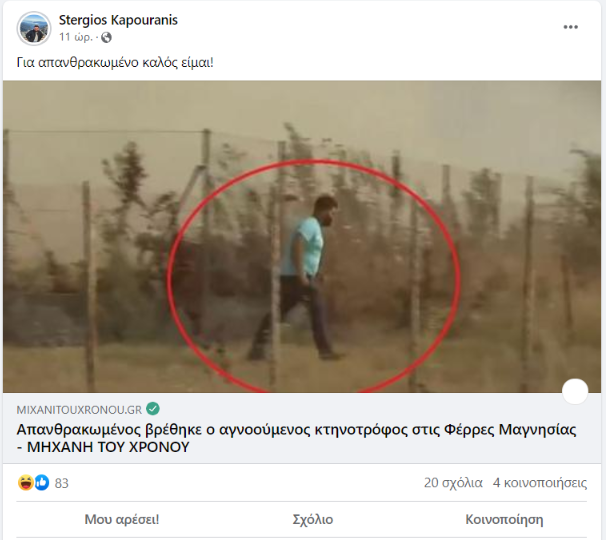 Εξετάζοντας τα σχόλια κάτω από την ανάρτηση του προαναφερθέντος δημοσιεύματος, εντοπίσαμε σχόλιο του χρήστη Γιώργου Β., ο οποίος ξεκαθάριζε πως ο άνδρας της φωτογραφίας είναι συγγενικό του πρόσωπο και είναι ζωντανός.