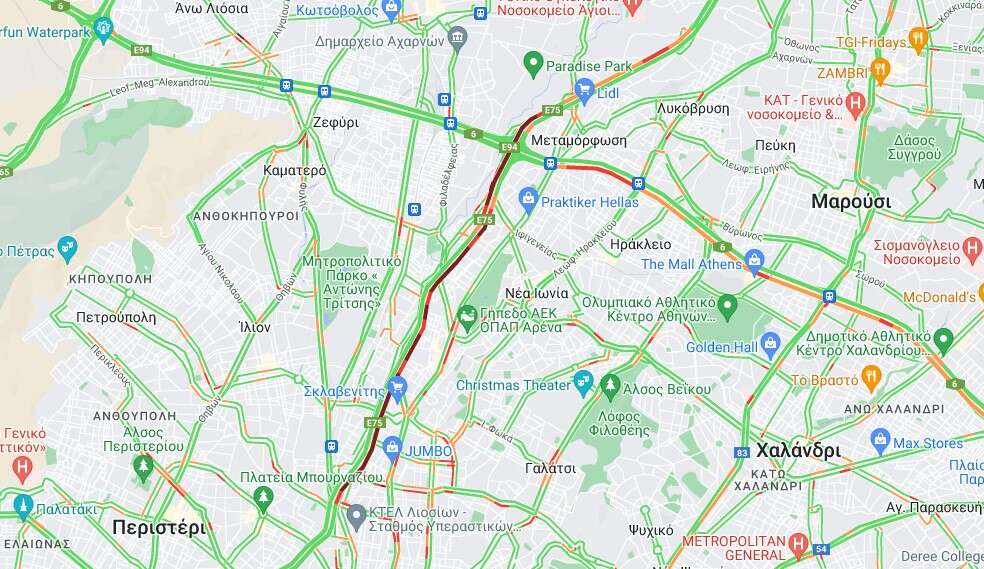Η κίνηση στους δρόμους μετά το τροχαίο ατύχημα στον Κηφισό