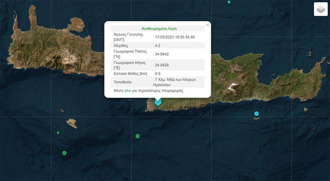 Ο σεισμός έγινε Νοτιοδυτικά της πόλης των Μοιρών, ήταν 5.1 βαθμών της κλίμακας ρίχτερ κι εκδηλώθηκε σε εστιακό βάθος 7 χιλιομέτρων.