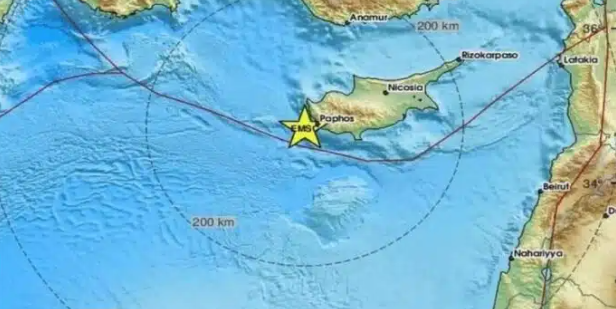 Ένας σεισμός μεγέθους 4,9 βαθμών της κλίμακας Ρίχτερ καταγράφηκε 29 λεπτά μετά τα μεσάνυχτα σε υποθαλάσσια περιοχή, 18 χλμ. νοτιοδυτικά της Πάφου στην Κύπρο.