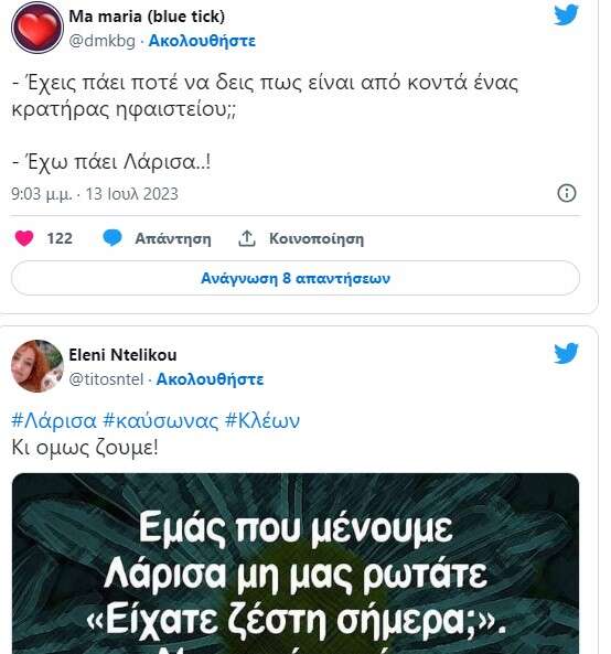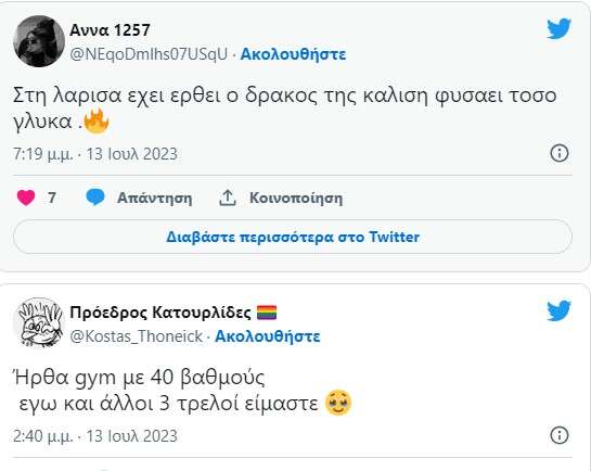 Λάρισα: Τα tweets για τον καύσωνα που «χτύπησε» την περιοχή