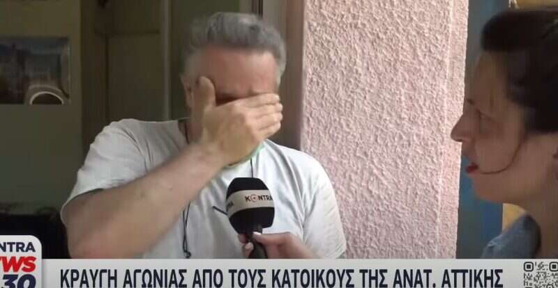 «Παιδιά, τέτοιο πράγμα να μη ζήσει κανείς. Σπάσαν τα νεύρα μου, σταμάτα», δηλώνει με δάκρυα στα μάτια ένας απελπισμένος πολίτης, ζητώντας από τον οπερατέρ να διακόψει τη λήψη.