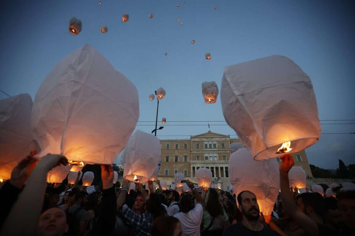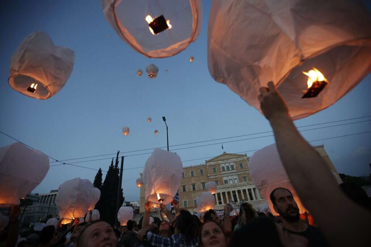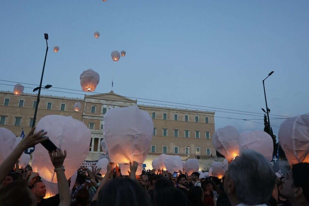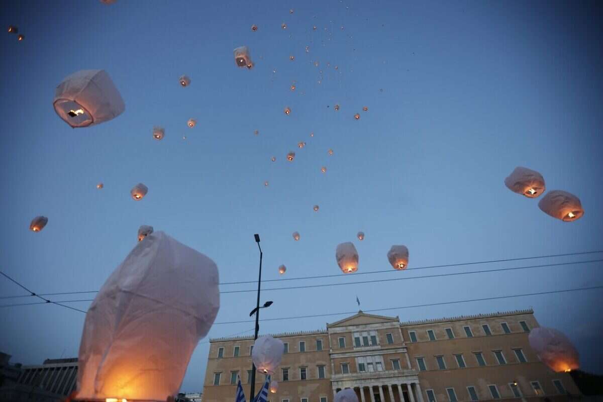 Σύνταγμα: Δεκάδες φαναράκια στον ουρανό για τους νεκρούς στην Πύλο