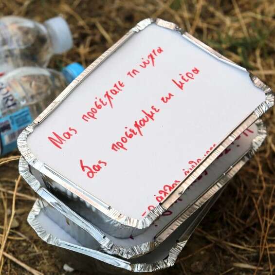 Η κοινωνική κουζίνα τους μοίρασε φαγητό ώστε να πάρουν δυνάμεις και να συνεχίσουν το δύσκολο έργο τους, αλλά αυτό που πραγματικά συγκινεί είναι το μήνυμα που έγραψαν στο χαρτόνι που καλύπτει τα αλουμινένια ταψάκια με το φαγητό.