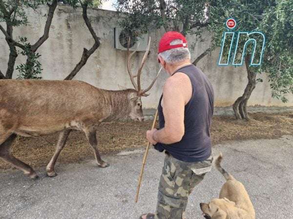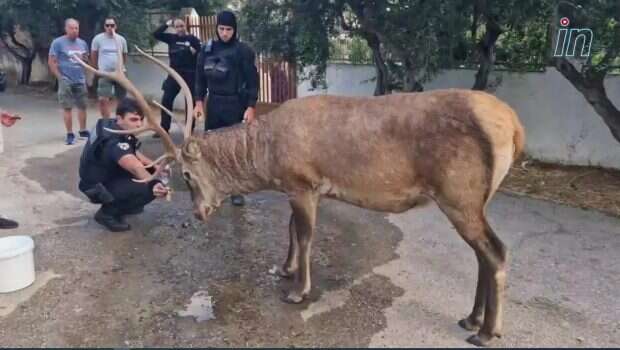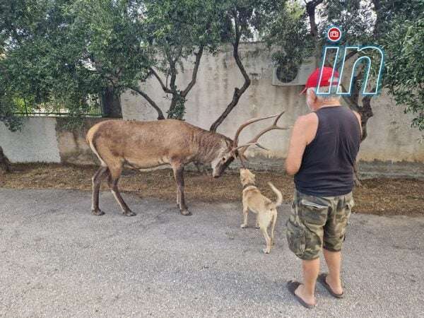 Του έδωσαν νερό και φαγητό, ενώ όπως μπορείτε να δείτε και στη φωτογραφία του in.gr, το ελάφι δεν φοβόταν και πλησίαζε τους ανθρώπους και έναν σκύλο που βρισκόταν στο σημείο.