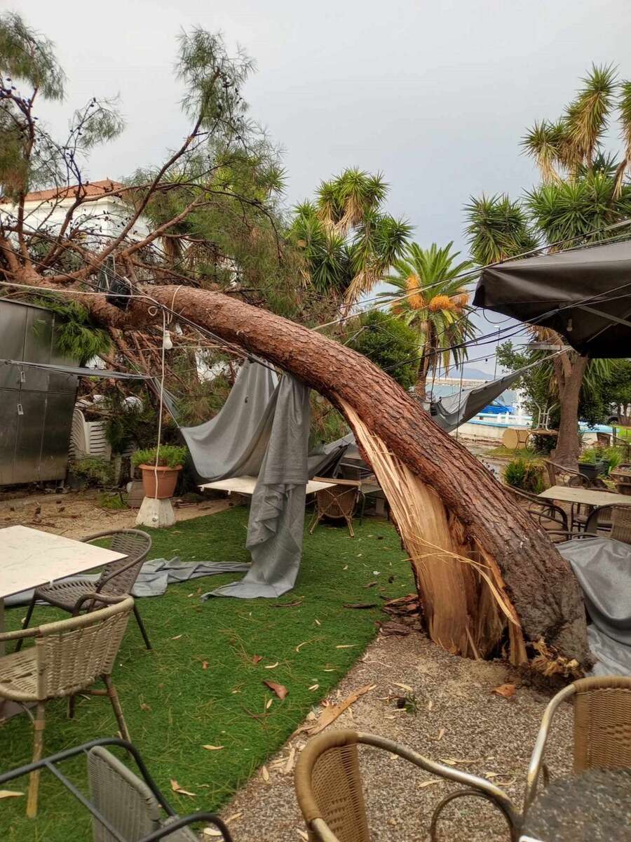 Το περιστατικό αυτό όμως δεν ήταν το μοναδικό καθώς δέντρα έπεσαν και στο πάρκο Λιμενικού προκαλώντας ζημιές σε δύο ουζερί που βρίσκονται στην περιοχή.