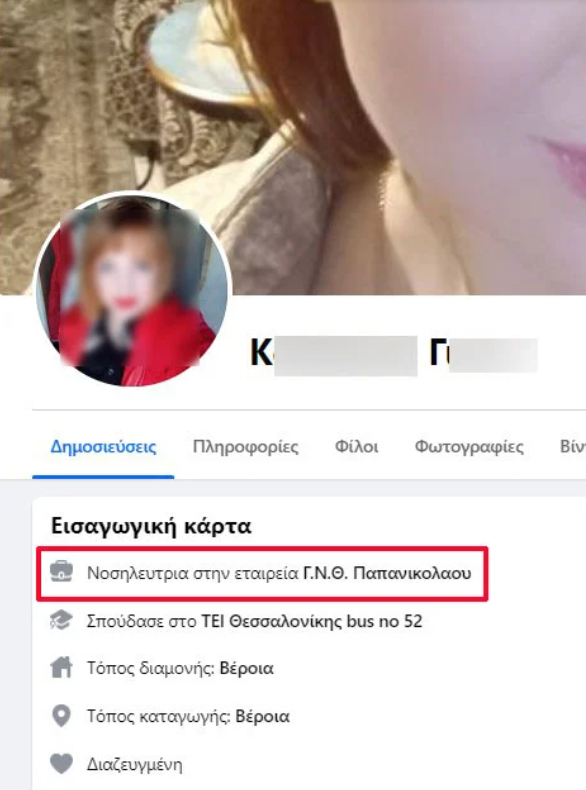 Η ίδια έχει αναρτήσει μάλιστα στα Μέσα Κοινωνικής Δικτύωσης πως εργάζεται στο συγκεκριμένο Νοσηλευτικό Ίδρυμα.