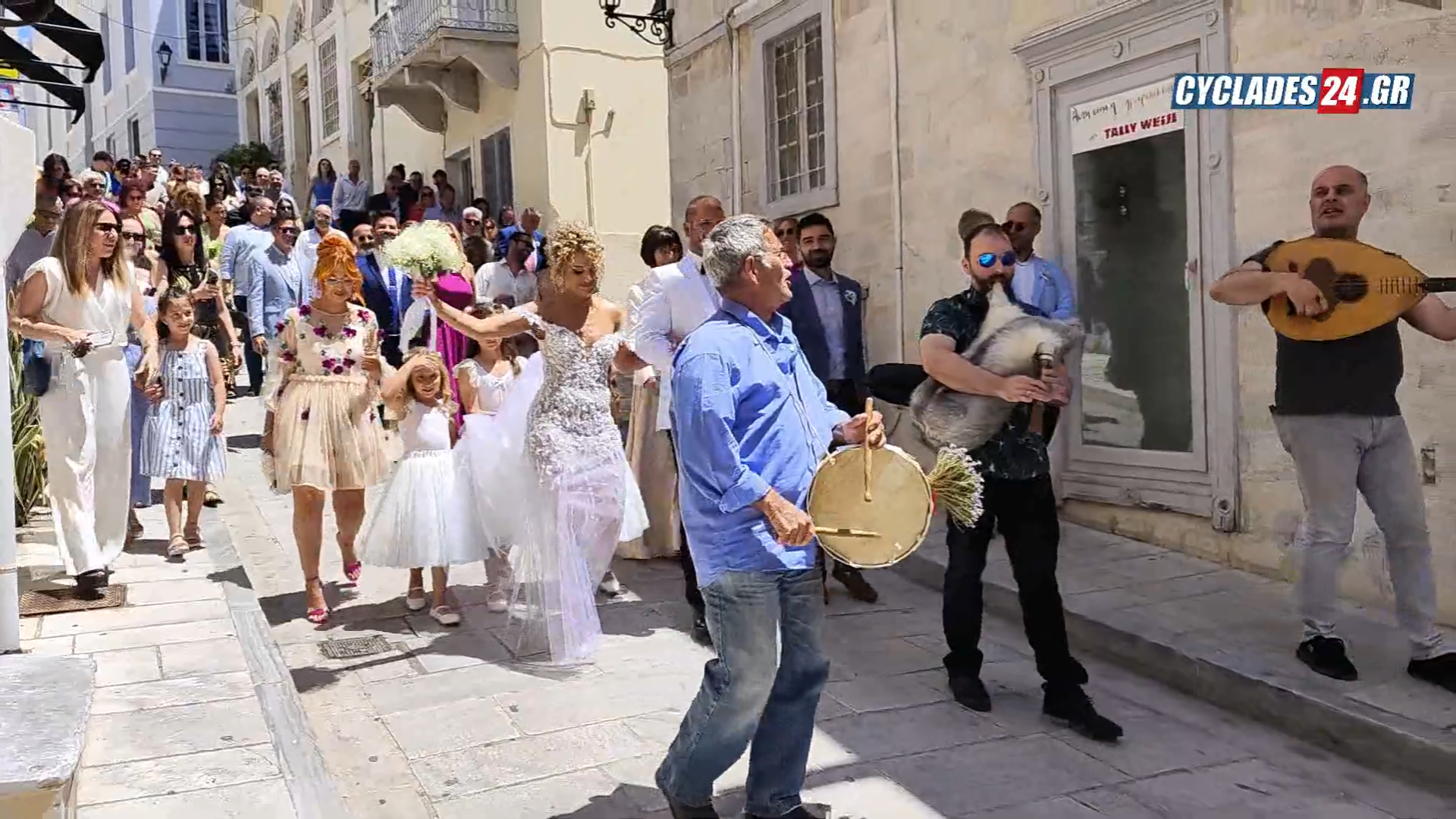 Ένας όμορφος γάμος πραγματοποιήθηκε σήμερα στην Σύρο όπου είχε μπόλικο χορό, τραγούδι και ΚΤΕΛ.