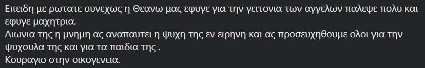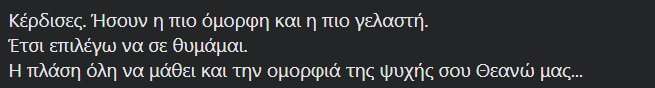 Συγγενείς και φίλοι της άτυχης γυναίκας την αποχαιρετούν, κάνοντας ιδιαίτερη αναφορά στη γενναία μάχη που έδωσε με τον καρκίνο.