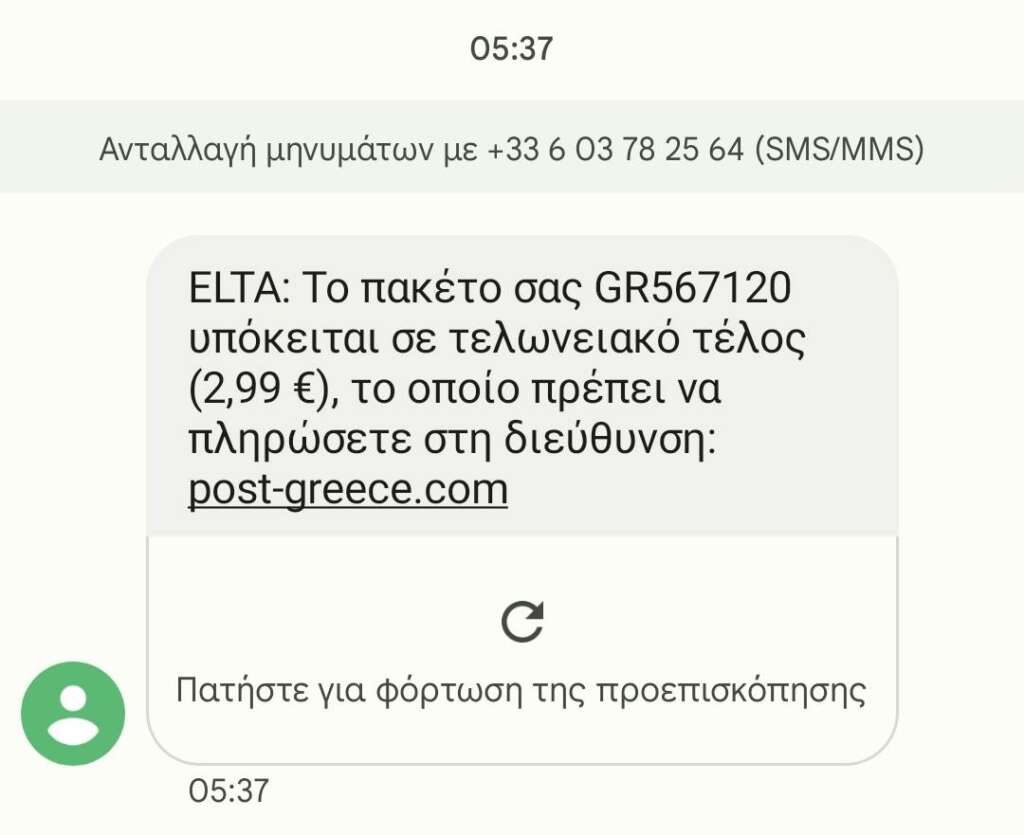 Για την ιστορία, μια παρόμοια απάτη -που ακόμη δεν ξέρουμε αν συνδέεται με αυτή ή όχι- προσπαθεί να πιάσει θύματα εδώ και αρκετό καιρό. Συγκεκριμένα, στέλνονται αντίστοιχα SMS με υποτιθέμενα δέματα που έχουν κολλήσει στο τελωνείο και χρειάζονται πληρωμή. Και αυτά τα μηνύματα είναι απάτη και προσπαθούν να κλέψουν τα στοιχεία σας και να σας αποσπάσουν χρήματα.