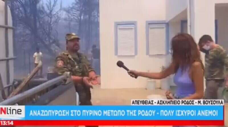 «Πυρά» εξαπέλυσε ένας στρατιώτης ο οποίος βρίσκεται στη Ρόδο και βοηθά στην κατάσβεση του πυρός. «Δεν υπάρχει τίποτα! Είμαστε μόνοι μας! Βλέπετε πουθενά πυροσβεστική; Έχει καεί όλο το νησί. Που είναι η Πυροσβεστική;» λέει απεγνωσμένος.