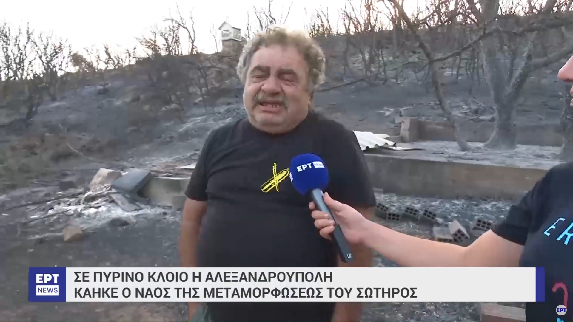 Η ΕΡΤ βρέθηκε στο χωριό και συνάντησε έναν αγρότη, ο οποίος περπατούσε μέσα στις στάχτες της επιχείρησής του και έβλεπε τους κόπους μιας ζωής να έχουν καεί ολοσχερώς.