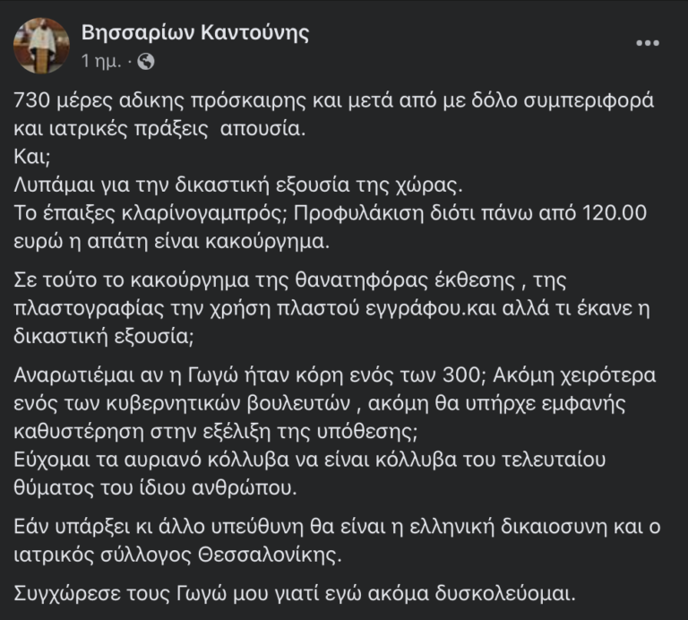 Εάν υπάρξει κι άλλο υπεύθυνη θα είναι η ελληνική Δικαιοσύνη και ο Ιατρικός Σύλλογος Θεσσαλονίκης.