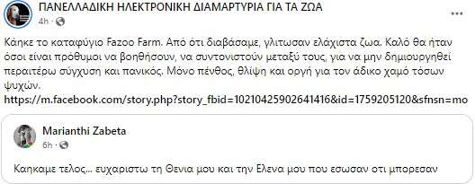 Ειδικότερα, σύμφωνα με αναρτήσεις στα social media, λίγα είναι τα ζώα που κατάφεραν να σωθούν από την μεγάλη πυρκαγιά, με τις πρώτες πληροφορίες να κάνουν λόγο για μόλις επτά σκυλιά και μία γάτα. Όσοι βρίσκονται κοντά στο σημείο καλούνται να βοηθήσουν στις προσπάθεις διάσωσης και μεταφοράς ζώων, καθώς αρκετά από αυτά αφέθηκαν ελεύθερα και πιθανώς αναζητούν βοήθεια.