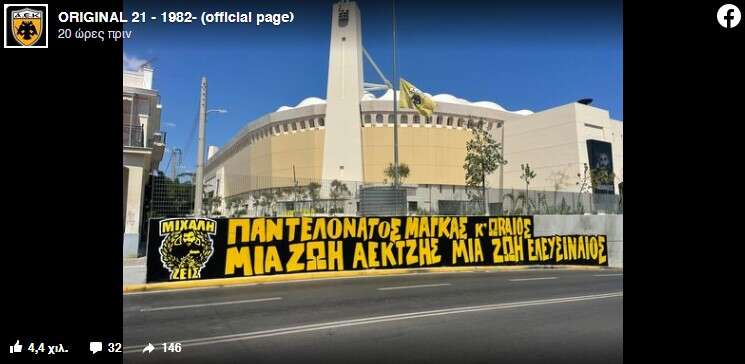 Χιλιάδες φίλοι της ΑΕΚ στο σημείο που δολοφονήθηκε ο Μιχάλης Κατσούρης