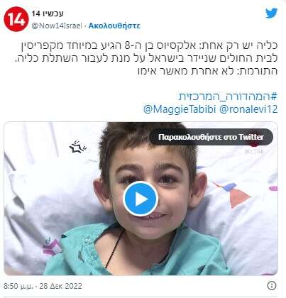 Αυτές τις μέρες βρίσκεται στο Ισραήλ και στο Νοσοκομείο Schneider όπου πραγματοποιήθηκε επιτυχώς η μεταμόσχευση. Την συγκινητική ιστορία της οικογένειας δημοσιεύουν τα ισραηλινά μέσα ενημέρωσης.
