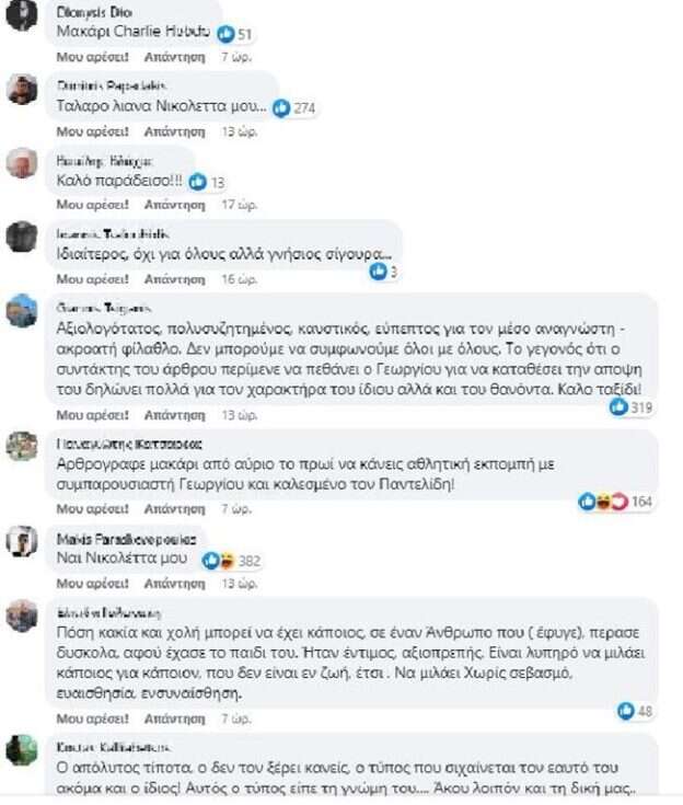 Γιώργος Γεωργίου: Μερικές από τις αντιδράσεις στα social media για το παραπάνω άρθρο