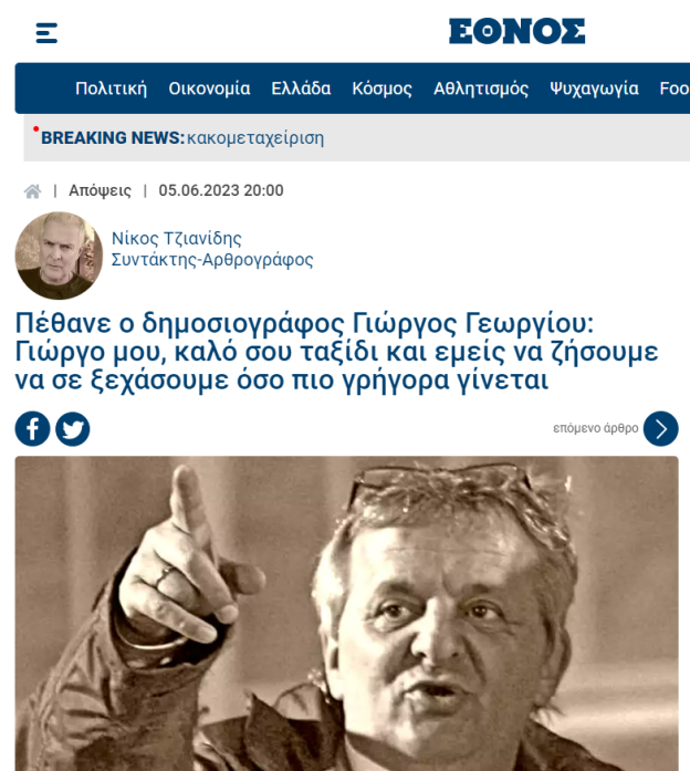 Γιώργος Γεωργίου: Το προσβλητικό άρθρο δημοσιεύτηκε πριν την κηδεία του αθλητικογράφου