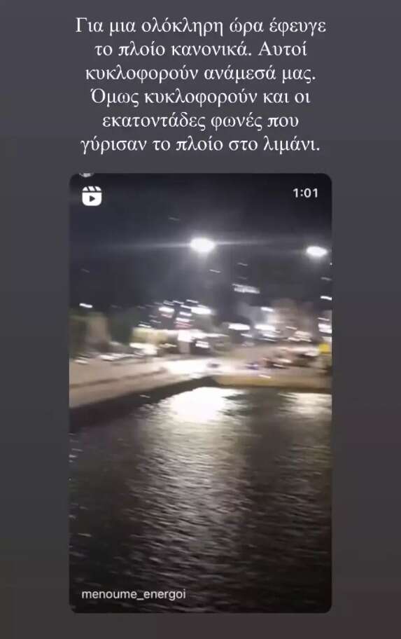 «Προσπαθώ καθημερινά να πείσω τον εαυτό μου ότι οι περισσότεροι άνθρωποι είναι καλοί, όμως πολλές μέρες όπως και σήμερα δεν τα καταφέρνω. Για μια ολόκληρη ώρα έφευγε το πλοίο κανονικά. Αυτοί κυκλοφορούν ανάμεσά μας. Όμως κυκλοφορούν και οι εκατοντάδες φωνές που γύρισαν το πλοίο στο λιμάνι.