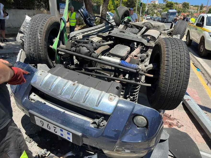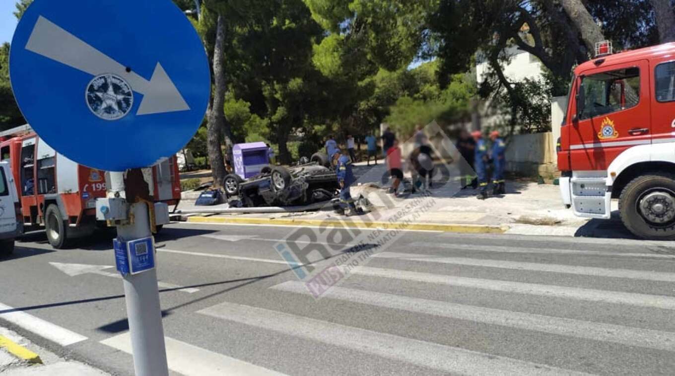 Η σύγκρουση ήταν σφοδρή και το ένα από τα αυτοκίνητα αναποδογύρισε στο απέναντι πεζοδρόμιο.