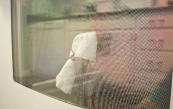 Αφού είναι έτοιμο το «εργαλείο», περάστε το σύρμα μέσα στο τζάμι. Σκουπίστε καλά το εσωτερικό του διπλού τζαμιού και επαναλάβετε με καινούριο μαντηλάκι, όταν το πρώτο έχει λερωθεί αρκετά.
