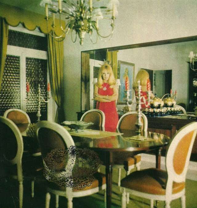 Χρυσοποίκιλτοι καθρέφτες, βαρύτιμα ασημένια κηροπήγια, λευκές μοκέτες, πίνακες του Βασιλείου, γυάλινα τραπέζια και μια σειρά από επίχρυσους Βούδες, που είχαν επικριθεί με αρκετή κακοπροαίρετη διάθεση ως κακόγουστοι από πολλούς επισκέπτες του σπιτιού τότε…