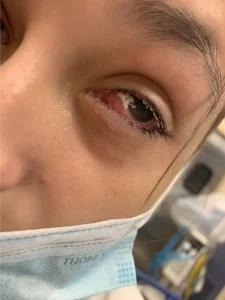 Το κορίτσι διακομίσθηκε στο νοσοκομείο, με τους γιατρούς να αναφέρουν πως είχε υποστεί χημικό έγκαυμα τρίτου βαθμού στο βολβό του ματιού της.