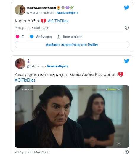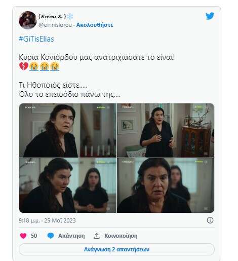 Το υποκριτικό ταλέντο της Λυδίας Κονιόρδου συγκίνησε για μια ακόμη φορά τους τουιτεράδες, οι οποίοι έσπευσαν να δώσουν τα εύσημα για την εξαιρετική ερμηνεία.