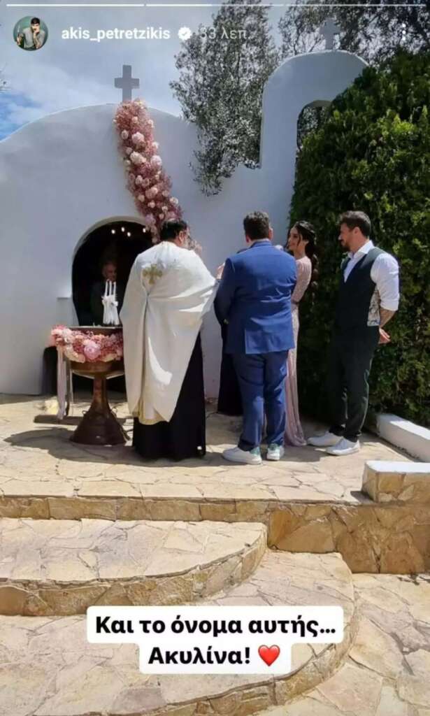 Σήμερα είναι μια πολύ ξεχωριστή ημέρα για τον Άκη Πετρετζίκη και τη σύζυγο του, Κωνσταντίνα Παπαμιχαήλ. Το ευτυχισμένο ζευγάρι βάφτισε την 7 μηνών κόρη τους και επέλεξαν ένα ιδιαίτερο όνομα.